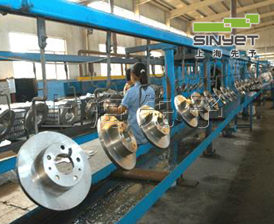 工藝剎車盤高壓噴淋清洗機一般采用懸掛鏈輸送方式清洗零件,具有清洗液噴淋清洗、熱水高壓清洗、二次漂洗、壓縮空氣切水、熱風(fēng)烘干、噴涂防銹油、壓縮空氣吹油等功能的新穎連續(xù)式清洗干燥工序。
