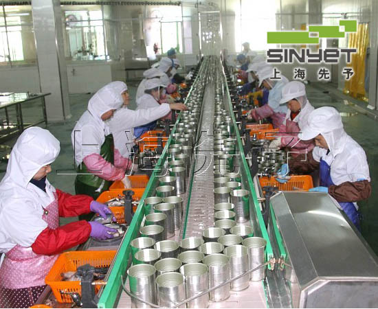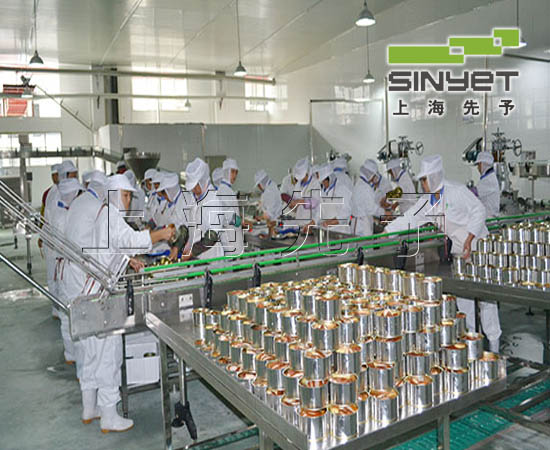 工藝非標(biāo)食品罐頭生產(chǎn)線主要工藝流程: 原料解凍→清洗→→漬鹽→清洗脫鹽→人工切段→人工裝罐→加湯→排氣→一次去油→二次加湯→二次去油→加湯→封口→實(shí)罐清洗→堆垛→高壓殺菌→冷卻→清洗及吹干→內(nèi)噴碼→堆垛→入庫